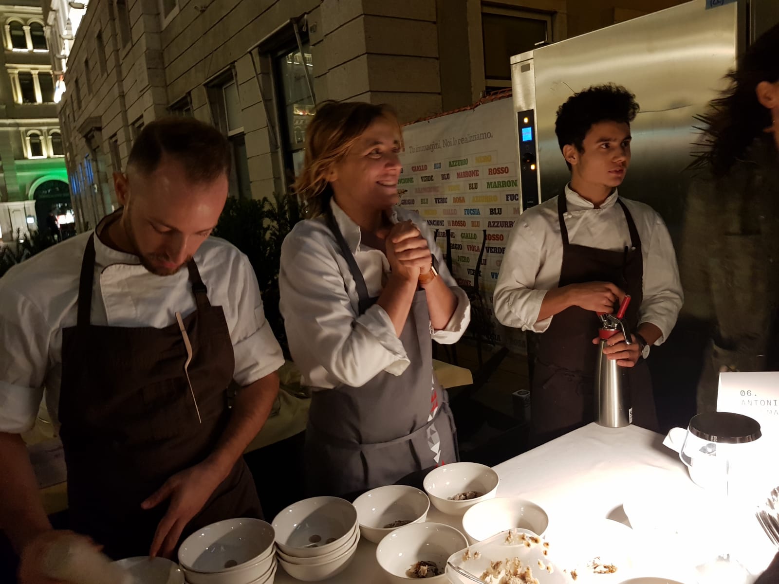 Menu alla mano, c’era chi seguiva ligio il percorso consigliato, dall’1 al 10, mentre gli chef raccontavano le loro preparazioni. Ma c’era anche chi invece giocava a scegliere le station degli show cooking creando un percorso personalizzato, mentre gli obiettivi di cellulari e macchine fotografiche eternavano volti e piatti.